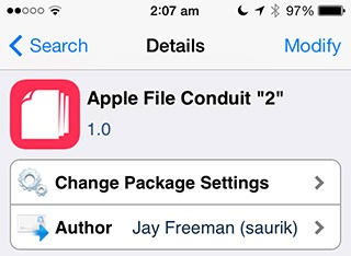 - In the search bar, fill in Apple File Conduit “2” (replacement for the old afc2add package).