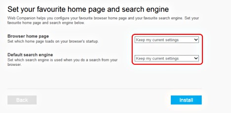 Note: To avoid the program direct change the browser existing setting, choose “Keep my current settings” when install Ad-Aware Web Companion PRO.