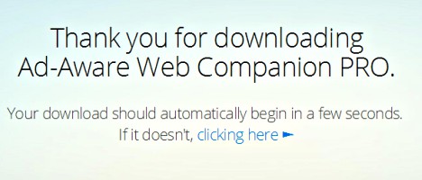 - Once completed, the page will automatically download the Ad-Aware Web Companion PRO software (WcInstaller.exe)