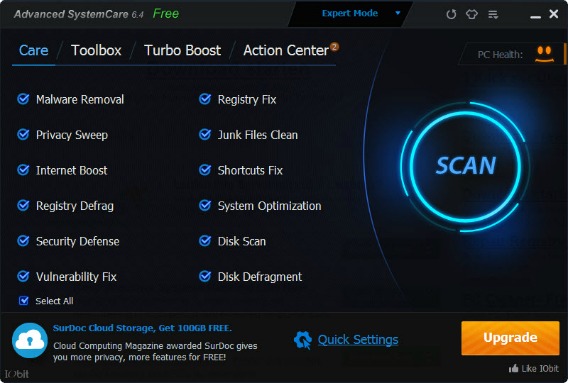 Advanced SystemCare 9 is an advanced all-in-one PC optimization utility software that provide one click approach to perform optimize the system, defragment the registry, privacy protection, performance tune-up, analyze the hard drive, repair vulnerabilities, and system cleaning to speed up PC performance. In other to boosts PC system, Advanced SystemCare 9 also provide real-time protection against spyware, adware, and other malware to increase PC security protection.