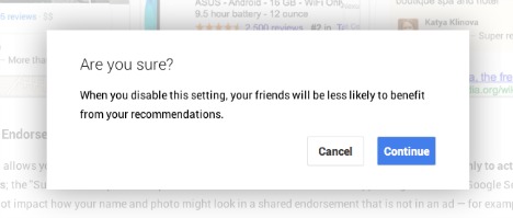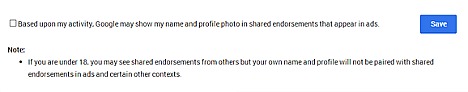 - Go to settings page in Google+ accounts, scroll down until see the bold letters “Shared Endorsements”.