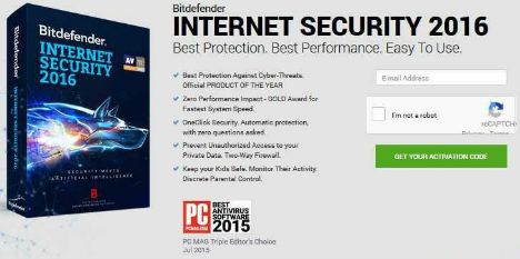 - Fill in the required info with email address and select “I’m not a Robot”, and then click “GET YOUR ACTIVATION CODE” to get the free BitDefender Internet Security 2016 license key code.