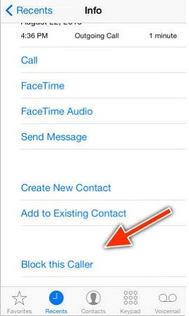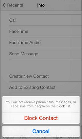 - Select “Block This Caller” options and press the “Blocked Contact” button to confirm, iOS 7 will block contacts across the board list.
