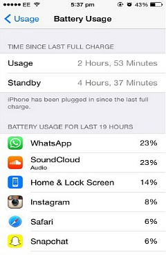 It will show up total battery usage time and standby time. From there, it also will list down all the apps and how much battery the apps used up.
