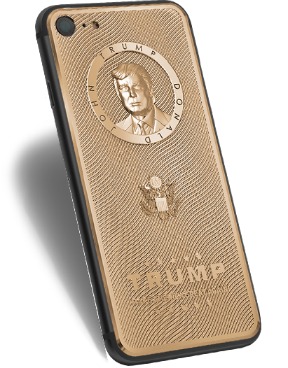 The luxury Russian Jewellery company brand Caviar (previous launched of gold-plated iPhone with Russian President Vladimir Putin face on the back) has created another limited edition series of gold-plated iPhone that pay tribute and blessed to new United States President Donald Trump.