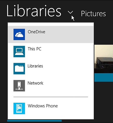 Note: If you browse to a picture, OneDrive photos will automatically open in Libraries. If the photo you want to use is located somewhere else, including a network location, click the Libraries dropdown and browse to it.