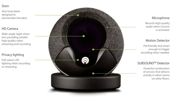 To deliver smart and more reliable home security, Cocoon come with SUBSOUND technology that allows users to protect a typical home with a single and simple device while machine learning can apparently discern normal activity from suspicious activity, pushing alerts to user smartphone when any abnormal is detected.