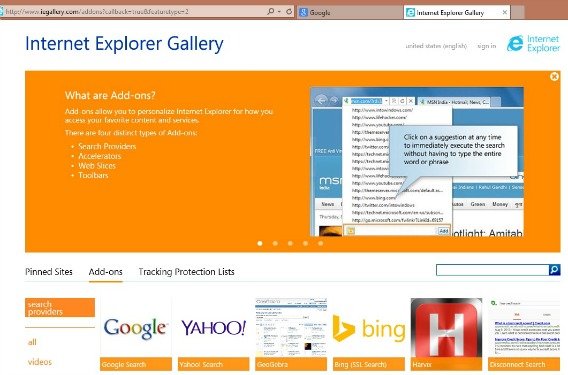 - The Internet Explorer Gallery page will open in New Tab page. Now click on search engine provider that like to add, and then click on “Add to Internet Explorer” button.