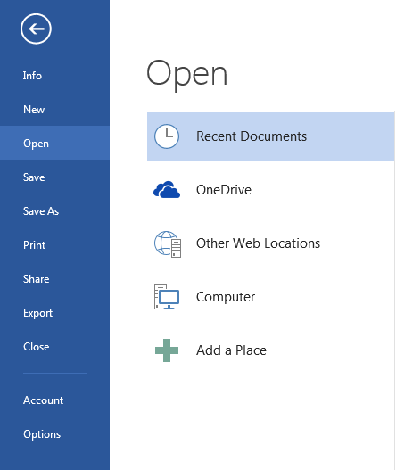 For Office users, one of the changes for new Office 2016 is the annoying start screen every time when you open it. The screen will displays a variety of templates and a list of your recently opened documents for your quick access. If you would rather by pass this start screen and directly open a new and blank document, follow the steps below to disable the start screen. This method is workable to apply it on Word, Excel, PowerPoint, Visio and Project.
