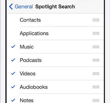 Go to Settings > General > Spotlight Search, and uncheck the items un-need indexed.