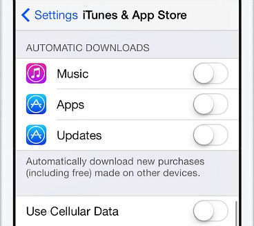 To disable, head to Settings > iTunes & Apple Store. You’ll see Updates under Automatic Downloads. Disable the Updates option to turn off automatic updates.