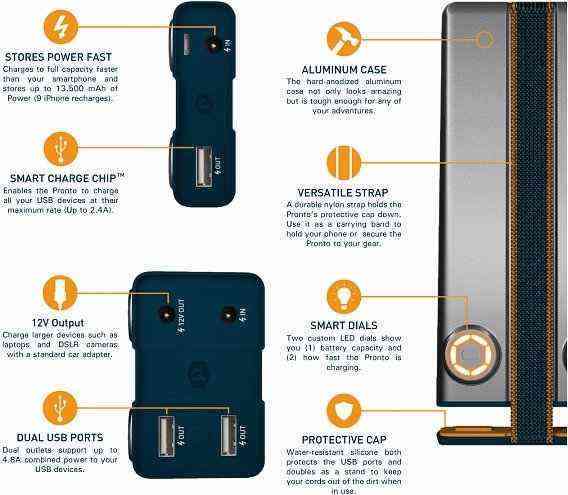 Pronto comes with two models – Pronto 5 (4500mAh) and Pronto 12 (13500mAh), where both models need recharge in an hour and equipped with a rugged hard-anodized aluminium enclosure. Pronto 5 combined with a single USB port allow users to charge one device at a time. On the other hand, Pronto 12 has dual high-power 2.4 A USB ports and includes 12V adapter that can charge larger devices such as laptops, DSLR cameras, and drone batteries.