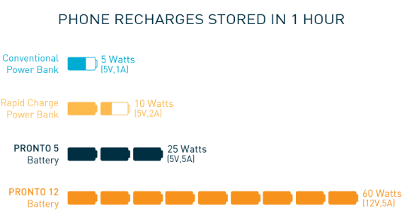 Speed is the selling point of the Pronto. Pronto has been designed to charge 12x times faster than the other portable battery packs at market. It able to fully charge single smartphone in just five minutes and can fully charge up to 9 devices within an hour.