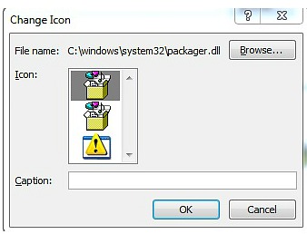 Display as icon: Insert an icon that represents the content of the file into your worksheet. - If selected Display as icon option. Click on “Change Icon” to change the Caption Text and the icon for the inserted file. Click “OK” once done. A file will be inserted into the Excel worksheet with display as icon.