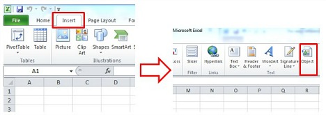- Open Office Excel worksheet, and then go to “Insert” tab and click on “Object” option to insert an embedded object.