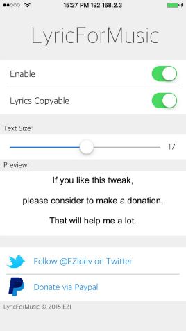 Since, all of the lyrics are pulled from the Internet, which means it requires a working internet connection in order to pull the lyrics and display them. LyricForMusic is available for free and you may download from Cydia’s BigBoss repo.