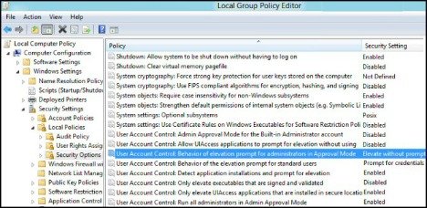 User Account Control: Run all administrators in Admin Approval Mode