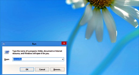 - Press Windows Key+R, type msconfig in search box and then click OK button.