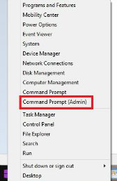 - Right click the Start button and select Command Prompt (Admin) from the menu to launch Command Prompt as Administrator.