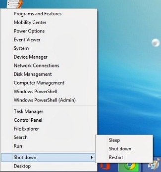 - Right-click on mouse or press-hold on a touch screen in Start button.