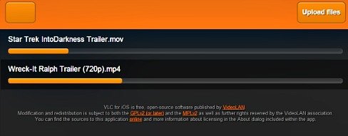 - Once the VLC WiFi Upload window appears, click on the “Upload files” button or drag and drop the files into PC Web browser.