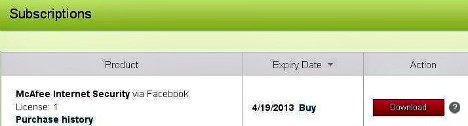 - Click on the “Download” button to proceed with the online download and grab the free 6 months McAfee Internet Security 2013.