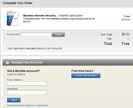 Note: this offer is for new users only - User will be redirected to McAfee registration page, and then create an account to complete order.