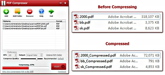 PDF Compressor Pro is an advanced utility software for Windows OS that features to compresses PDF files into smaller PDF file size with fast and easy. It comes with user friendly interface which allow users to select save PDF file to the original folder without overwrite the original versions, or save PDF files to specified folder path, and then PDF Compressor Pro also supports batch mode that lets users compress hundreds of PDF documents at once time.
