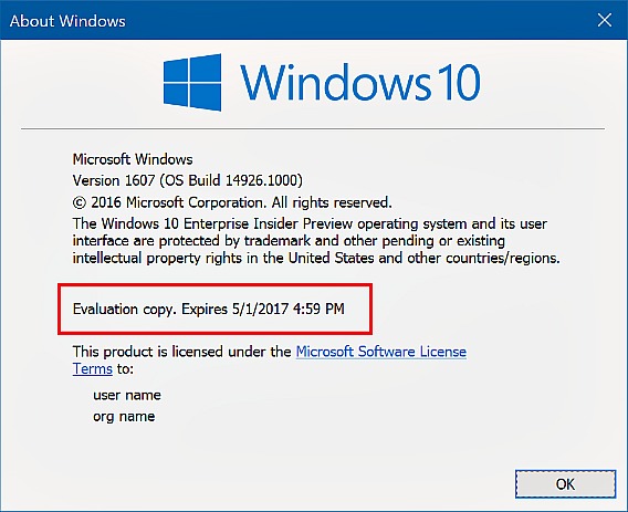 In addition, Build 14926 also has an updated expiration date of May 1st, 2017. If PC running previous build, it will notify build expiration date once a day until 1st of October. Then, PC will start rebooting every 3 hours. Note: If Windows 10 PC running with the Build 14393 Anniversary Update in the Slow and Release Preview rings, the build expire feature will not apply and notify to PC.