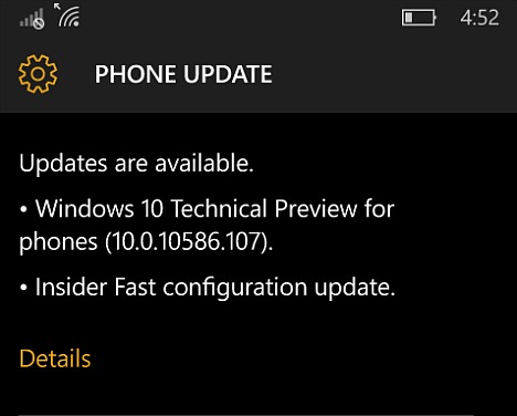 With followed release of Windows 10 Build 10586.104 cumulative operating system update (KB3135173) for PC users, Microsoft now roll out Windows 10 Mobile Preview Build 10586.107 to both Fast and Slow ring insider members with brings several bug fixes and improvements. This latest update Microsoft name it as Build 10586.107.